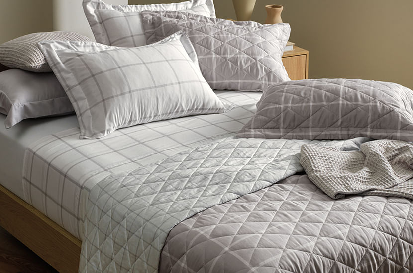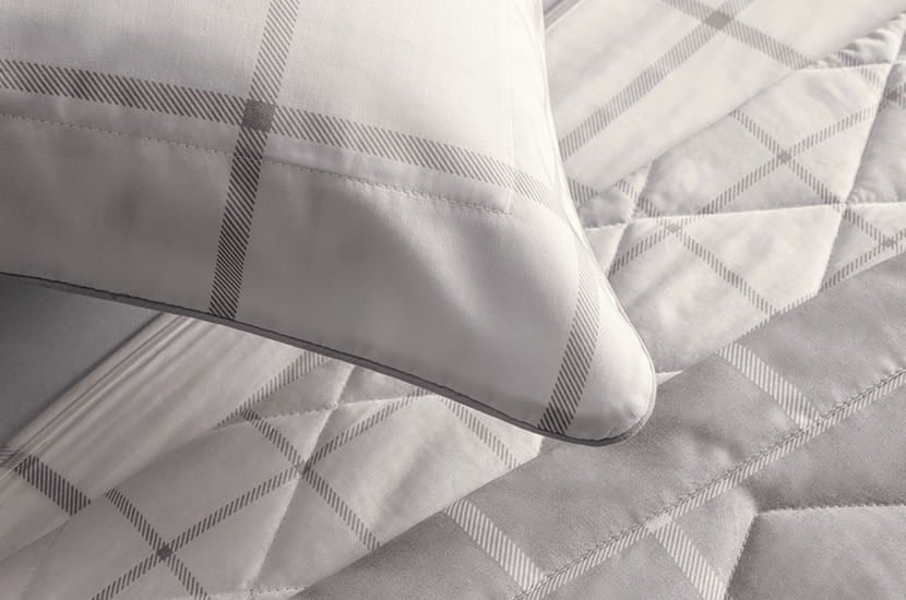 A colcha Queiroz, confeccionada com 300 fios de puro algodão egípcio penteado eleva o conforto do seu quarto. A estampa xadrez geométrico em tons branco e cinza adiciona uma sofisticação única ao seu ambiente. O toque supremo do algodão egípcio proporciona uma sensação de luxo, enquanto a qualidade altamente respirável transforma suas noites em momentos frescos.