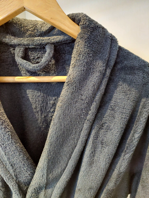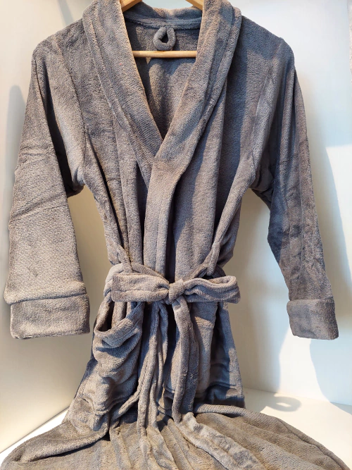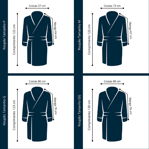 O roupão possui toque macio e aconchegante, bolsos frontais, comprimento ótimo, ideal para estações mais frias.